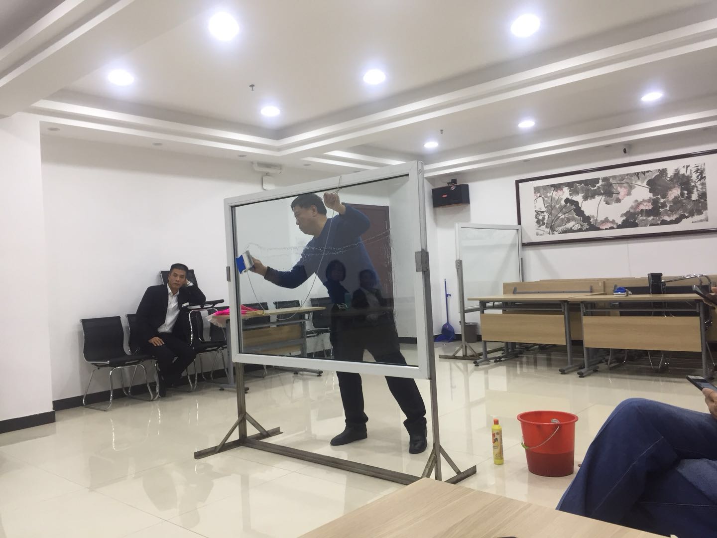 為提高公司管理人員基礎(chǔ)技能,潔霸公司利用周四內(nèi)部員工培訓(xùn)的時(shí)間組織了一次系統(tǒng)的內(nèi)部管理人員檫玻璃培訓(xùn),隨后并進(jìn)行了以組為單位的檫玻璃競(jìng)賽。