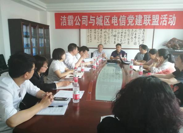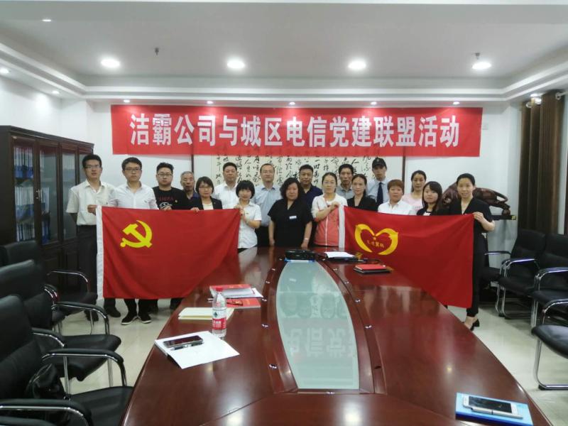 527日下午,潔霸公司黨支部與城區(qū)電信東城西城聯(lián)合黨支部開展了黨建聯(lián)盟活動。首先雙方對公司的概況以及黨支部成員的構(gòu)成做了詳細(xì)的介紹?偨(jīng)理程晉軍及支部書記李山虎對城區(qū)電信公司黨支部成員的到來表示了熱烈的歡迎。