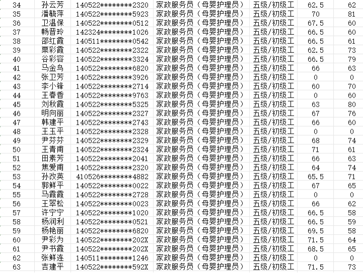 晉城市潔霸清潔服務(wù)股份有限公司 職業(yè)技能等級(jí)認(rèn)定中心 認(rèn)定人員成績公示