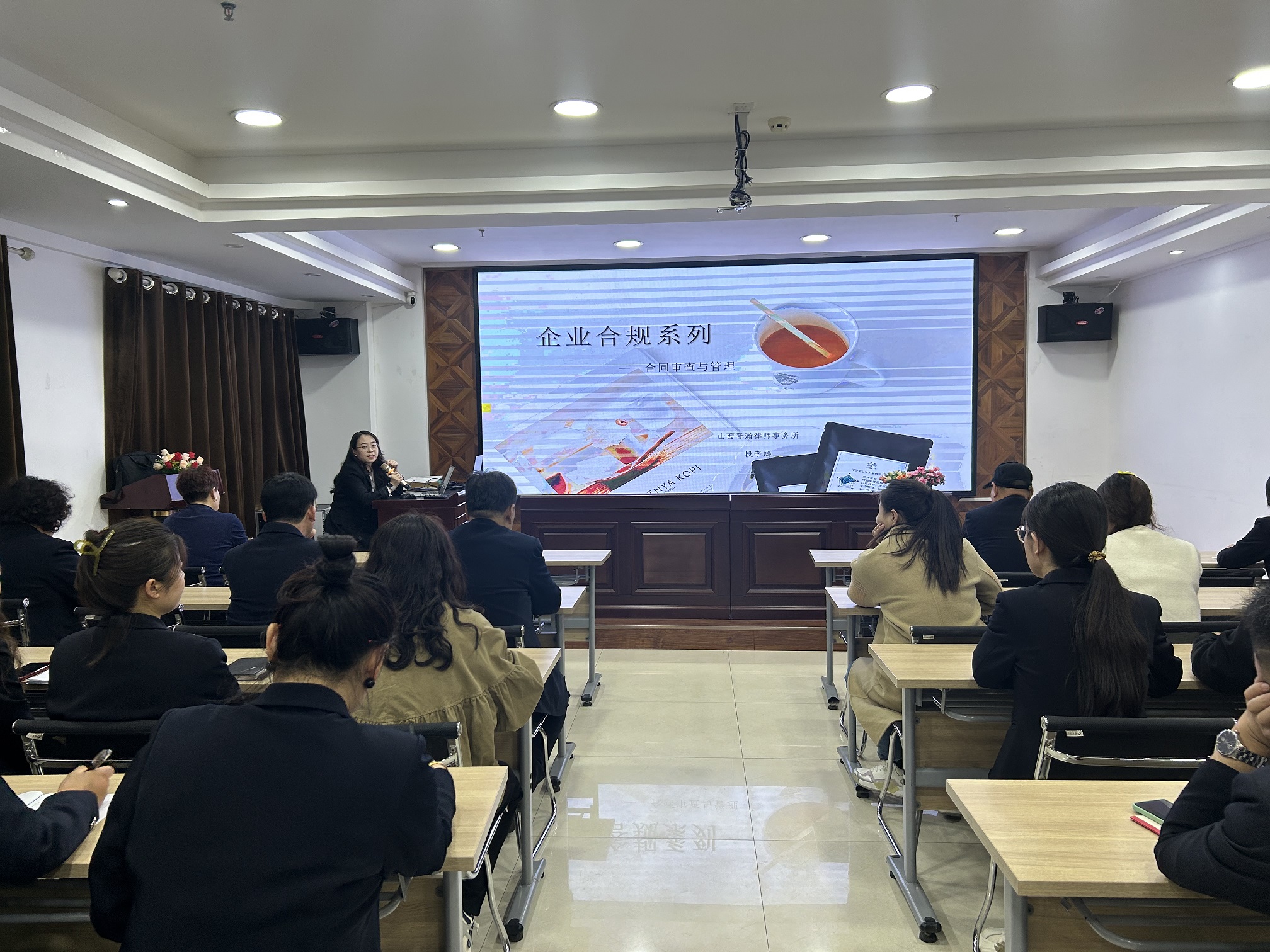 為加強企業(yè)合規(guī)管理,防控合規(guī)風險,提升公司管理人員素質(zhì),3月14日,公司在黨群活動中心舉辦專題培訓,邀請山西晉瀚律師事務所段李娜律師對企業(yè)合規(guī)系列重點對合同的審查與管理進行了解讀。公司領(lǐng)導、各部門經(jīng)理及部分管理人員30余人參加培訓。