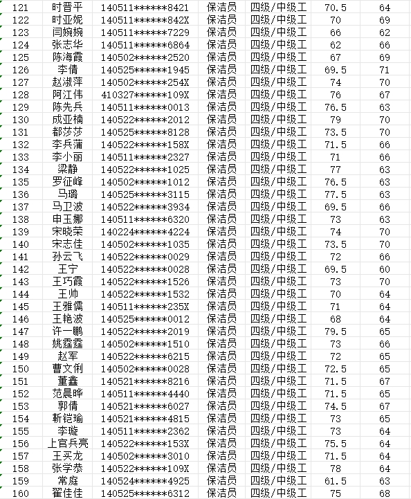 晉城市潔霸清潔服務(wù)股份有限公司職業(yè)技能等級(jí)認(rèn)定中心現(xiàn)將2024年2月25日認(rèn)定人員成績公示如下: