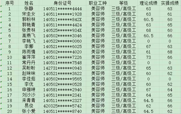 晉城市潔霸清潔服務股份有限公司職業(yè)技能等級認定中心現將2024年10月13日認定人員成績公示如下: